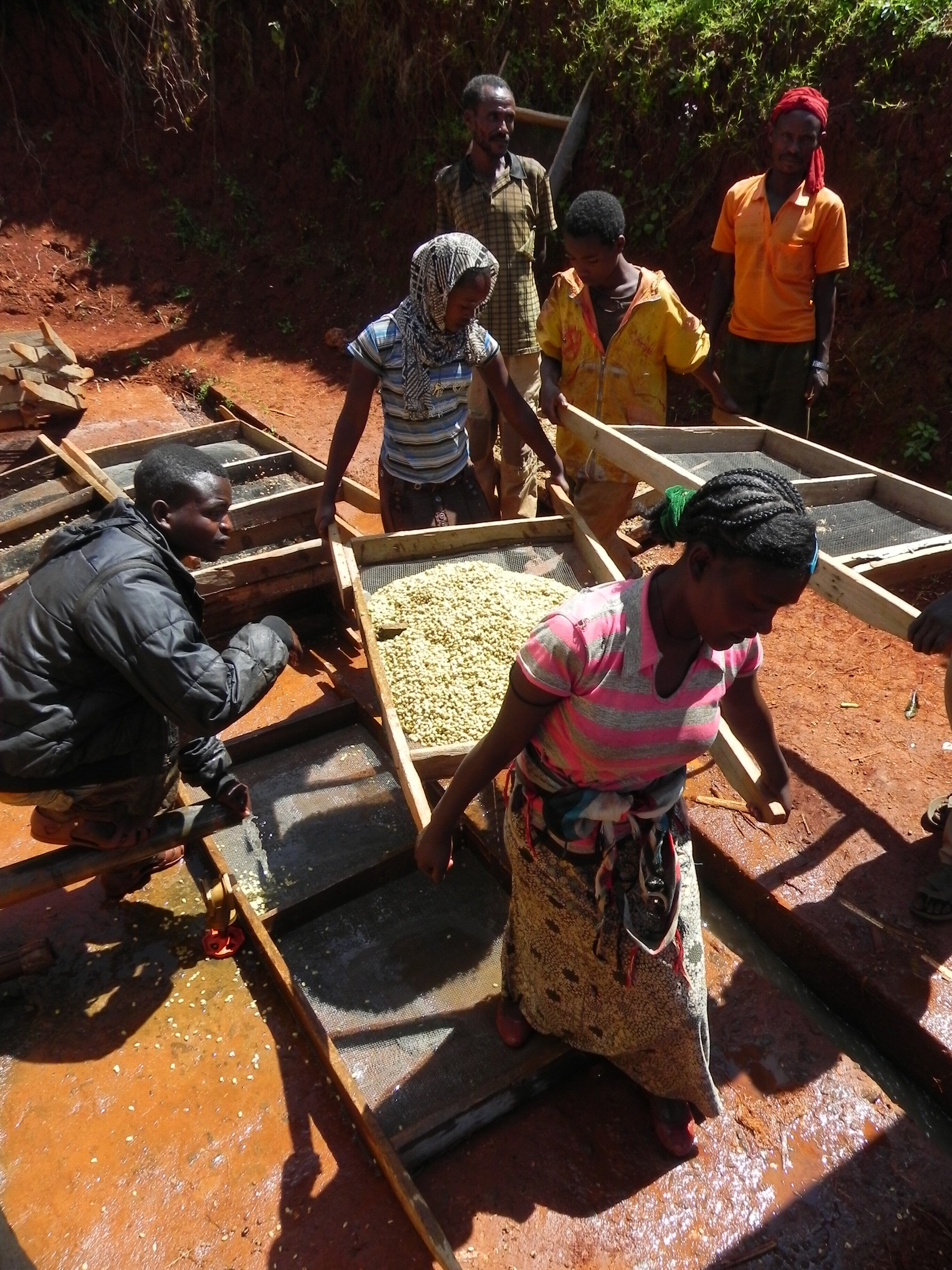 同社はイルガチェフやシダモ、グジなどで45の水洗工場と独占契約をしてコーヒーを調達する一方で、子会社として水洗工場を幾つか所有しております。 水洗工場を経由しての農家への先払い(収穫前)、完熟実の収穫、適切な水洗処理工程、スローな乾燥、そして自社の脱穀・精製工場での精度の高い選別が高品質でユニークな個性のあるコーヒーに繋がっています。精製工場では欠点豆の混入率を更に小さくする為、カラーソーターを一台増設し、更にスペースと生産効率向上の為、工場を拡張工事中です。