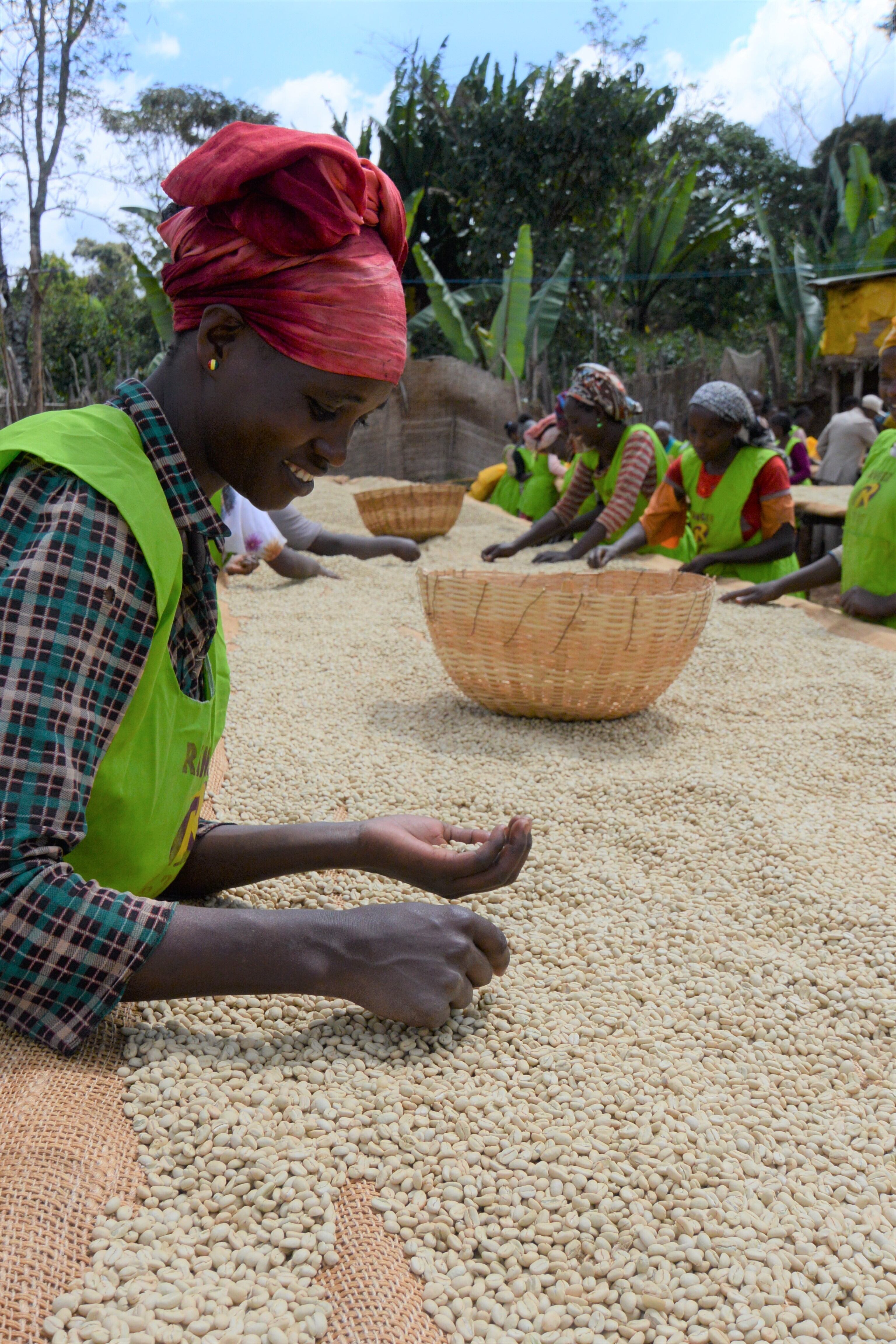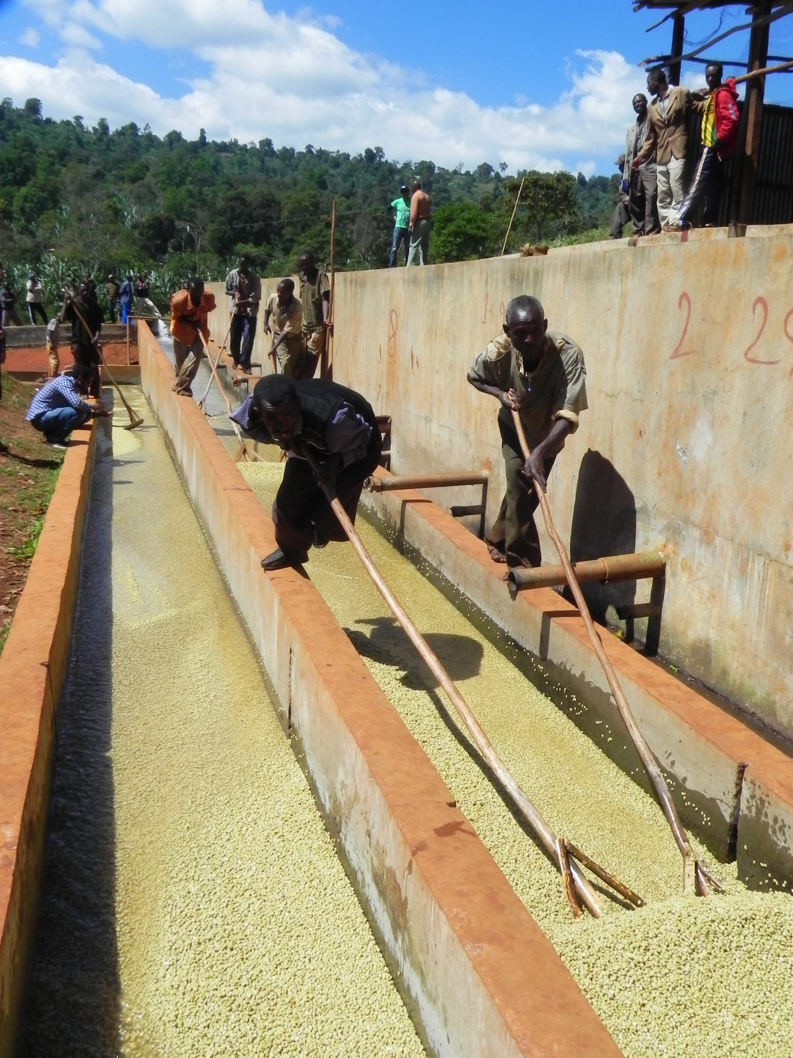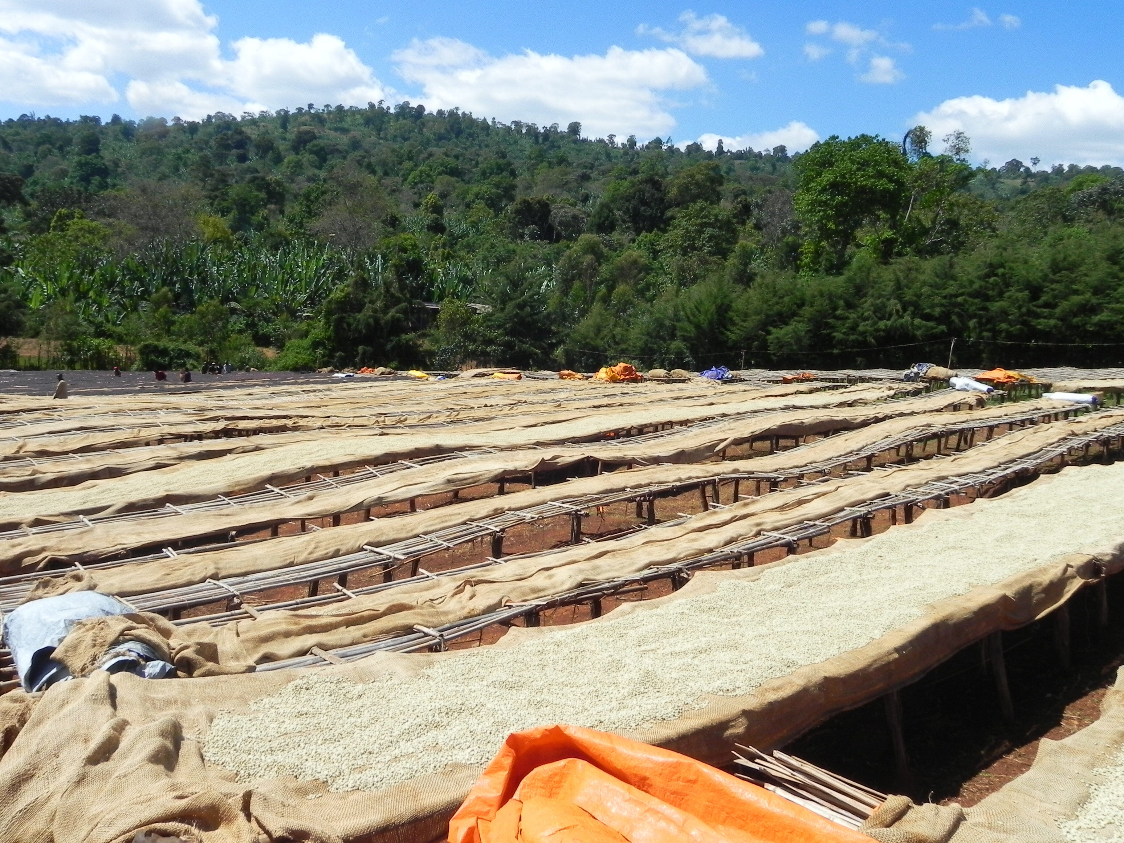 同社はイルガチェフやシダモ、グジなどで45の水洗工場と独占契約をしてコーヒーを調達する一方で、子会社として水洗工場を幾つか所有しております。 水洗工場を経由しての農家への先払い(収穫前)、完熟実の収穫、適切な水洗処理工程、スローな乾燥、そして自社の脱穀・精製工場での精度の高い選別が高品質でユニークな個性のあるコーヒーに繋がっています。精製工場では欠点豆の混入率を更に小さくする為、カラーソーターを一台増設し、更にスペースと生産効率向上の為、工場を拡張工事中です。